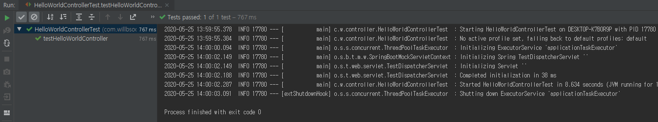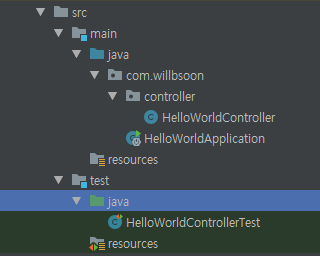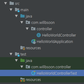 com.willbsoon.controller 패키지를 테스트폴더에 똑같이 만들어준후 테스트를 진행하면