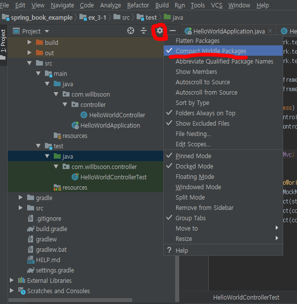 프로젝트 윈도우 우측 상단에 보이는 톱니바퀴 세팅을 누르게 되면 2번째에 compact middle packages 세팅을 해제해주면 된다. 중간 패키지들을 간단하게 보여주는것이라 해서 그렇게 부르는것 같다.