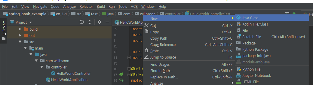테스트 폴더에는 컨트롤러를 테스트하기위해 컨트롤러 테스트 클래스를 만들어놨다.