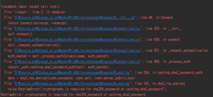구글링을 해보니 crytography 모듈을 설치해줘야 한다고 한다. 구글링은 사랑.....