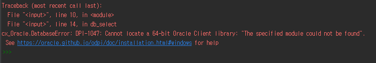 오라클에 접속하기 위해서 필요한 패키지가 cx_Oracle 이라는 패키지인데. 이 패키지만 설치한다고 해결되지 않는다.