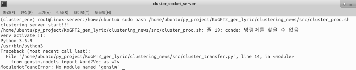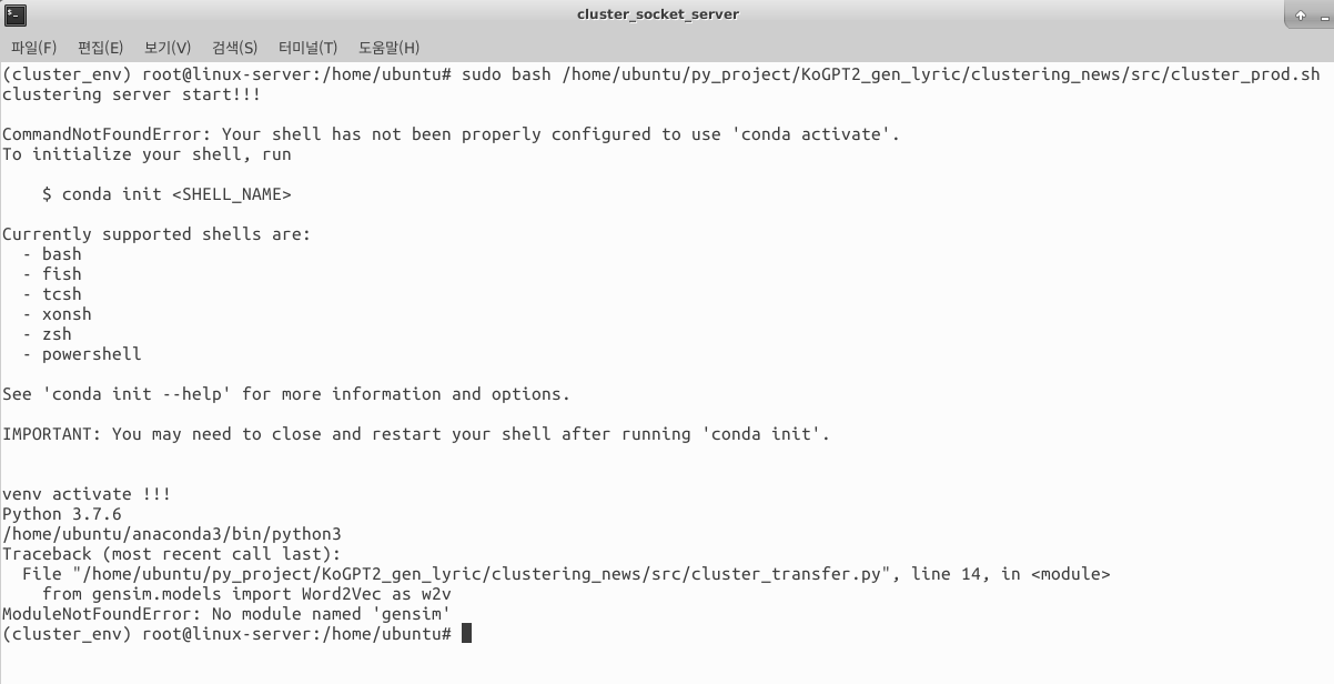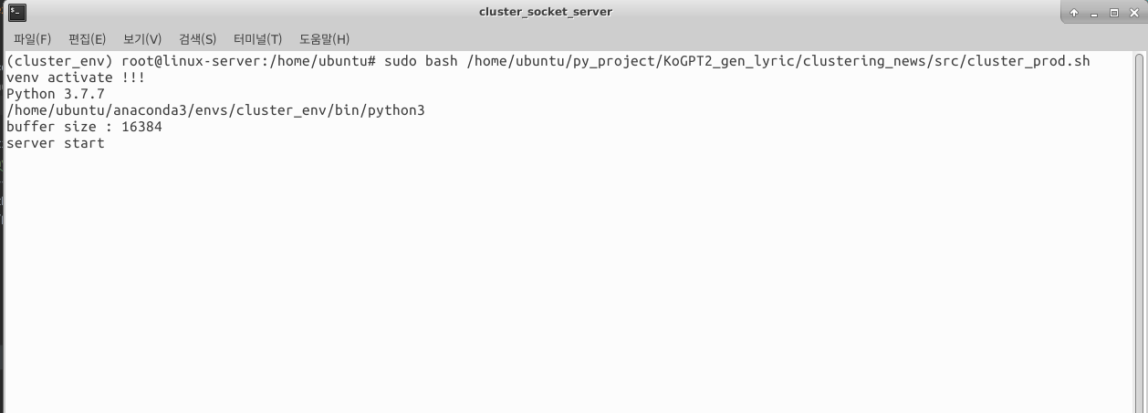 리눅스에서 pycharm 에디터로 열심히 개발을 한뒤에 이걸 실제로 소켓 서버로 사용하기 위해서는 .sh 파일로 만들어서 실행하는게 편할듯 하여 잘 기억은 나지않지만 열심히 쉘프로그래밍 하였다.