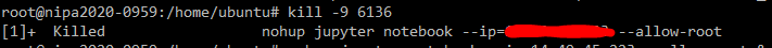 요런식으로 나온다. 여기서 jupyter notebook을 닫을것이기 때문에 앞에 있는 6136을 기억하자