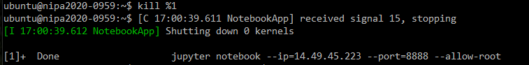 2번째 방법은 jobs 를 쓰는건데. jobs 명령어 입력하고 몇번째 프로세스인지 확인후 kill해주면 된다.