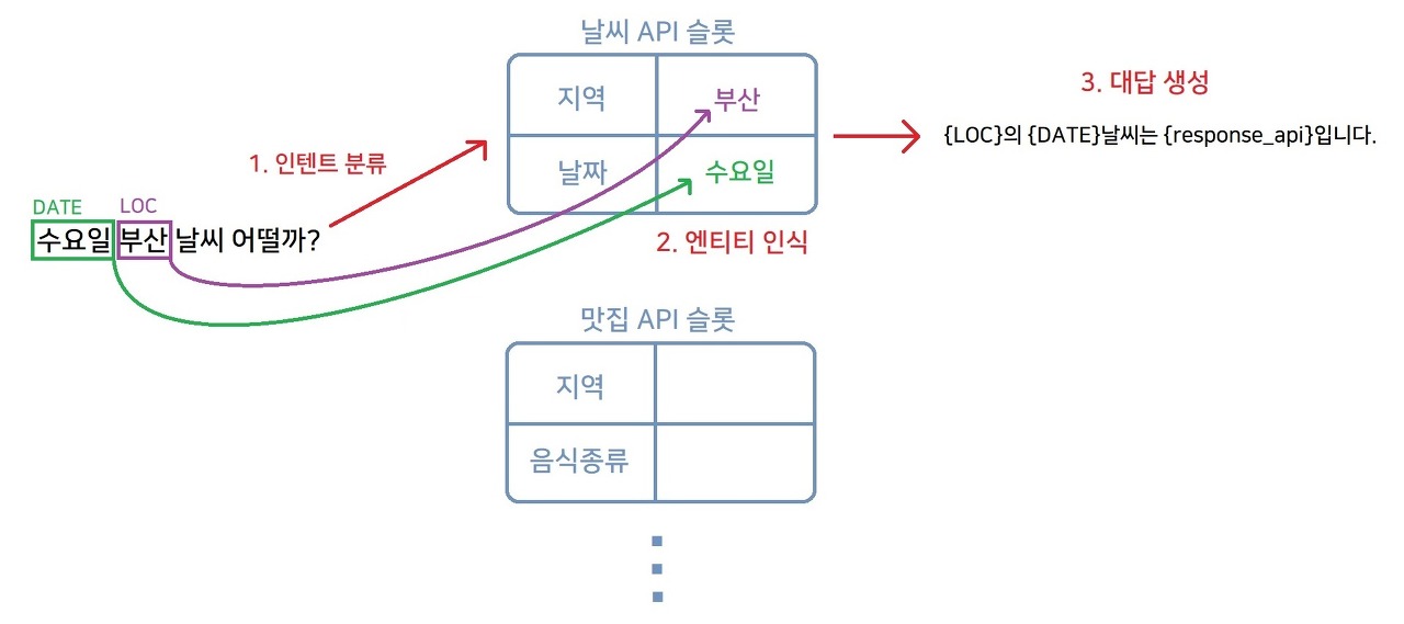 Close Domain 챗봇을 구현하고자 개발자는 slot filling 방식을 구현하였다고 한다. slot filling 방식은 말 그대로 정해진 slot이 있는데 이 slot을 채움으로써 챗봇의 역할이 정해지는 방식이다.