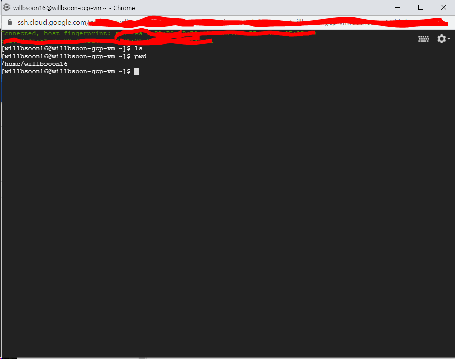 터미널환경으로 접속이 된다.