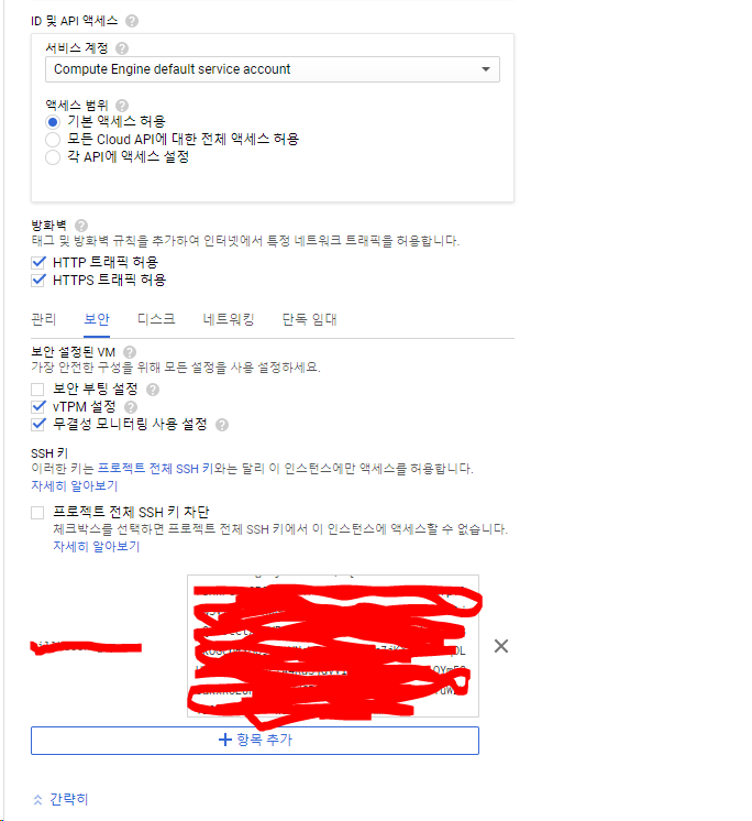 방화벽 허용을 해줘야 하고, ssh 키를 만들어 줘야한다.