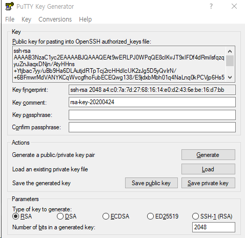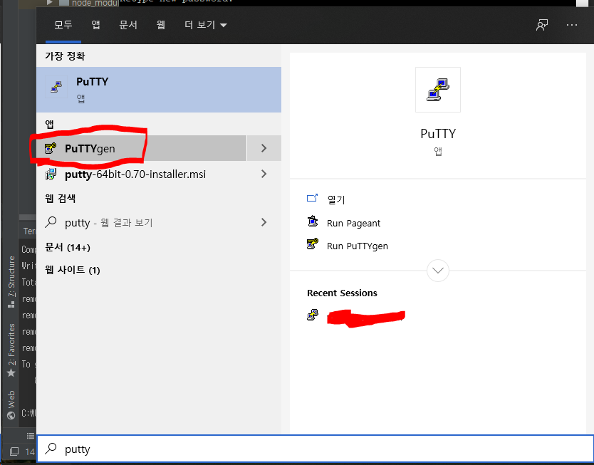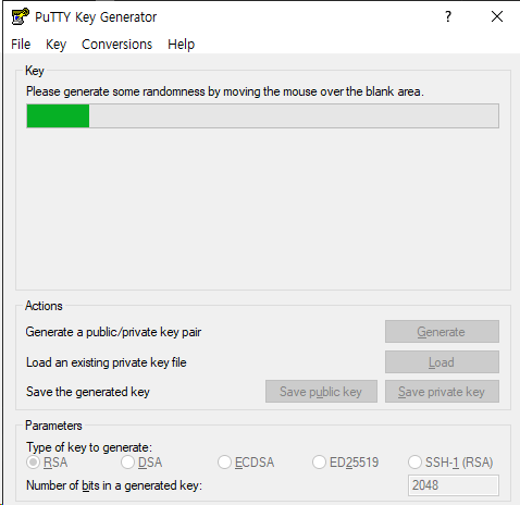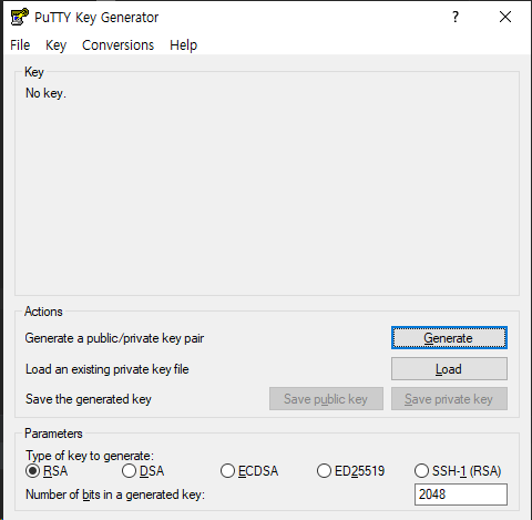 먼저는 putty gen을 켜보자. putty gen은 putty를 설치하면 자동으로 설치된다.