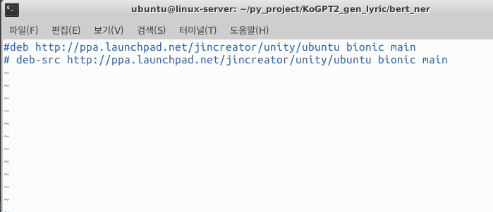 apt-repository에 대한 정보가 담겨있는 /etc/apt/source.listd/ 디렉토리로 이동하여서 해당 파일을 열고 주석처리 해주었다.