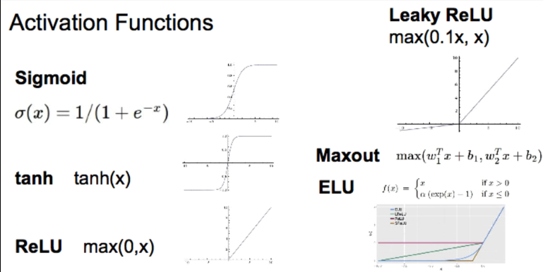 그렇다면 이중에 어떤 활성화함수를 써야할까?? 사실 정답은 없다. 하지만 일반적으로 ReLU 함수를 먼저쓰고 그 다음 ReLU Family 함수를 쓰면서 정확도를 체크해가야한다. sigmoid 같은경우는 가급적이면 쓰지 않는것이 좋다고 한다.