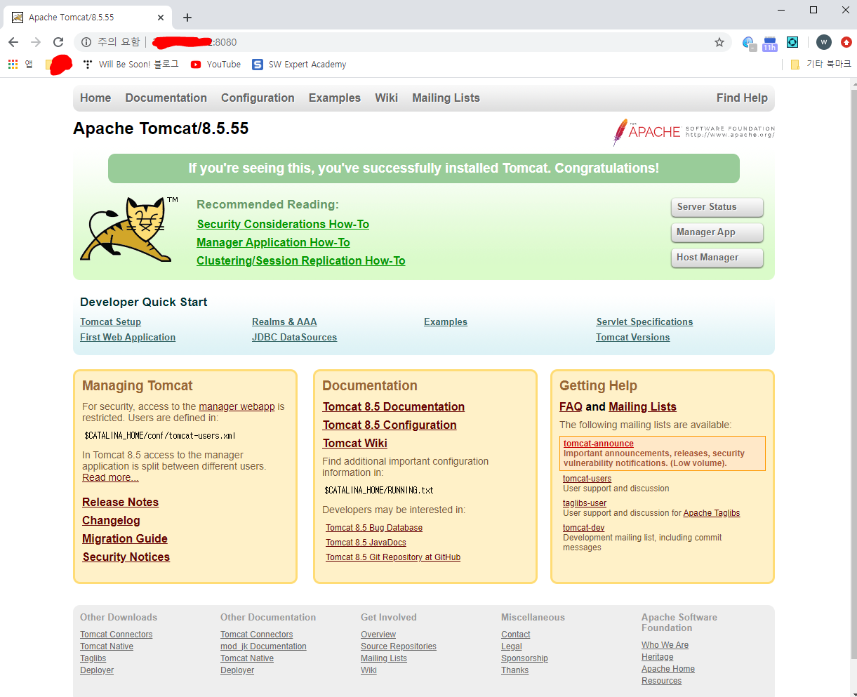 드디어... 반가운 톰캣 예제페이지가 보인다...
