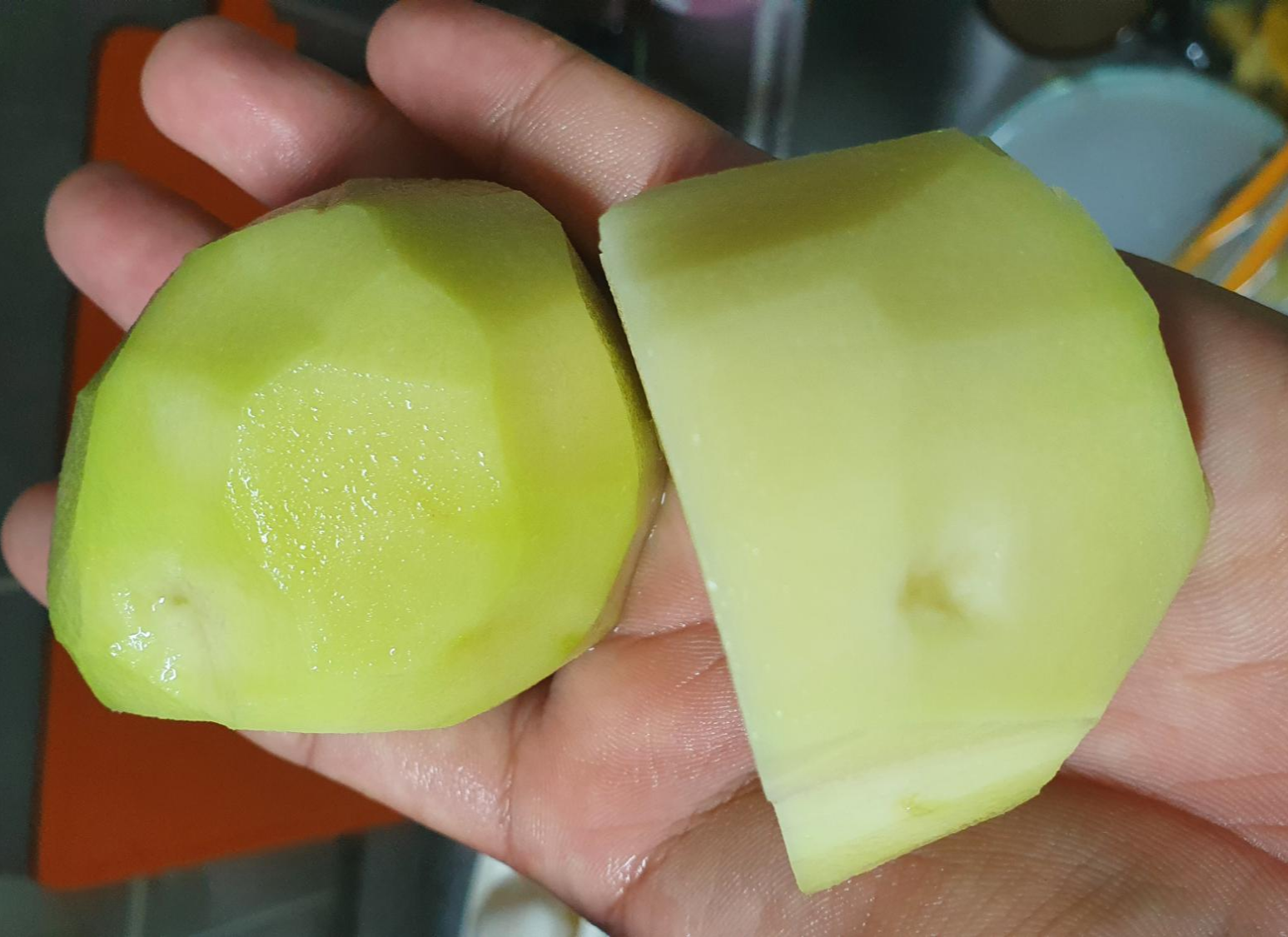 감자는 원래 노란색에 가까워야하는데 녹색을 띄고 있는 것이다. 이건 먹어도 될까???